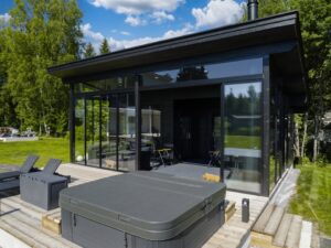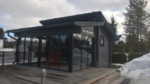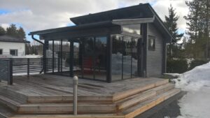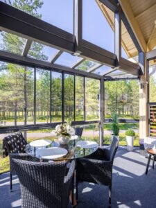 Lasiterassi mahdollistaa oleskelun ja maisemien ihailun säästä riippumatta. Etenkin lämmittimien avulla terassikautta voi jatkaa hyvin aikaisesta keväästä erittäin pitkälle syksyyn.