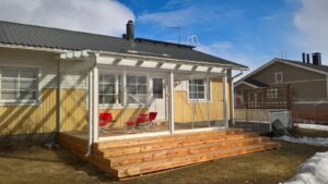 Suunnittelemme yhdessä kanssasi juuri teidän tarpeisiin ja kotiinne sopivan terassilasituksen. Toteutamme tarvittaessa terassin avaimet käteen -periaatteella. Terassilasituksen myötä oleskelutilat laajenevat luontevasti terassille ja saat hyödyllistä lisätilaa. Lasitus suojaa talon julkisivua sekä terassin kalusteita sateelta, tuulelta ja lialta.