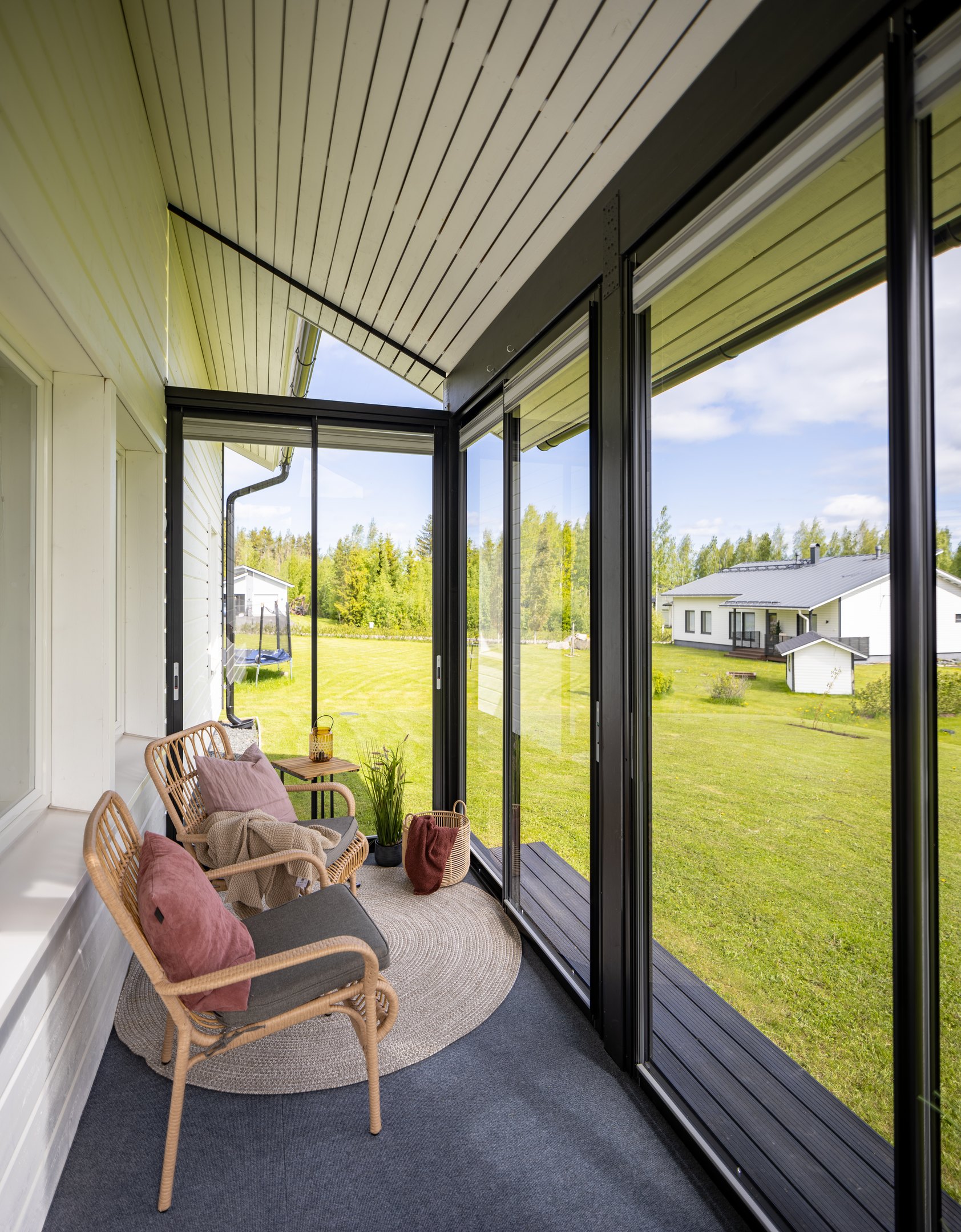 Lasiterassi vapauttaa myös varastotilaa, koska kalusteita ei tarvitse säilöä talveksi muualle. Keväällä terassilla oleskelusta pääsee nauttimaan heti ilman suursiivousta talven jäljiltä eikä siitepölyäkään tarvitse olla puhdistamassa pinnoilta jatkuvasti.