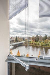 Pystypuitteeton terassilasitus on huomaamaton ja moderni lasitusratkaisu parvekkeille ja terasseille.