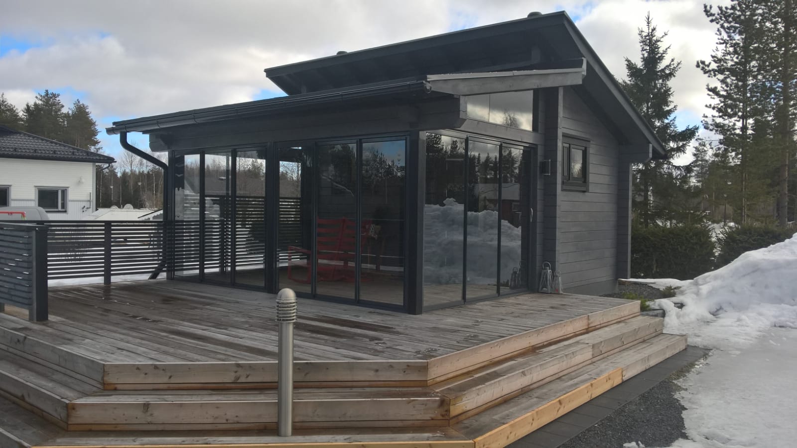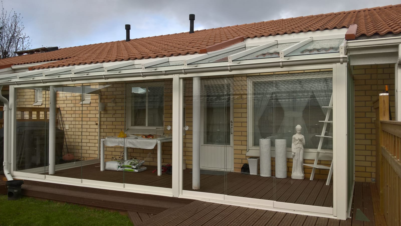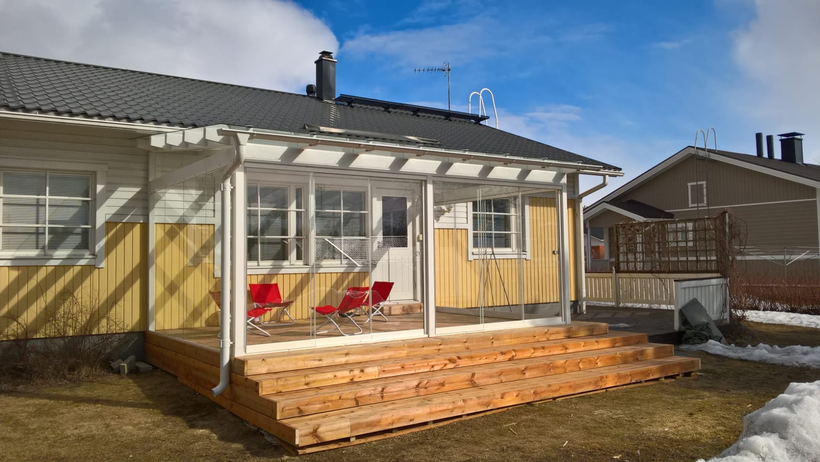 Lasiterassi vapauttaa myös varastotilaa, koska kalusteita ei tarvitse säilöä talveksi muualle. Keväällä terassilla oleskelusta pääsee nauttimaan heti ilman suursiivousta talven jäljiltä eikä siitepölyäkään tarvitse olla puhdistamassa pinnoilta jatkuvasti.