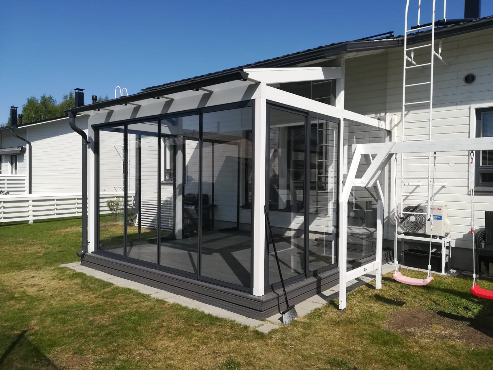 Emme valmista vain tuotteita, toteutamme unelmia. Suunnittelemme yhdessä kanssasi juuri teidän perheenne tarpeisiin ja kotiinne sopivan lasituksen. Asiantuntevat jälleenmyyjämme toteuttavat tarvittaessa terassin avaimet käteen -periaatteella perustuksista asennukseen saakka.